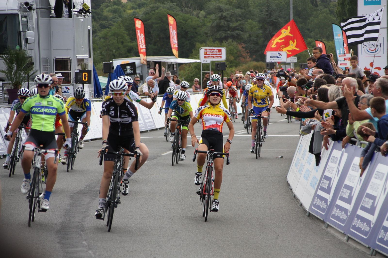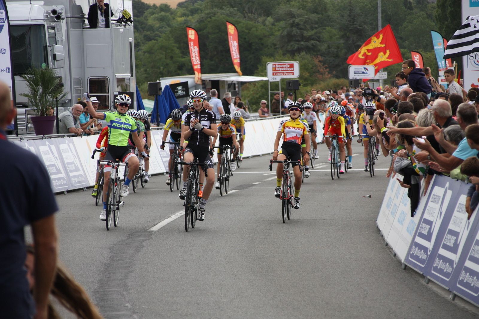 L'arrivée au sprint et la victoire pour la picarde Victoire BERTEAU devant Marie LE NET(Bretagne), 3e Jade WIEL(Provence).10e place pour Lou BERLAND(EC 3M.Poitou-Charentes), 37e Ilona FEYTOU(EC 3M. Poitou-Charentes) qui figuraient toutes les deux dans le peloton de tête.