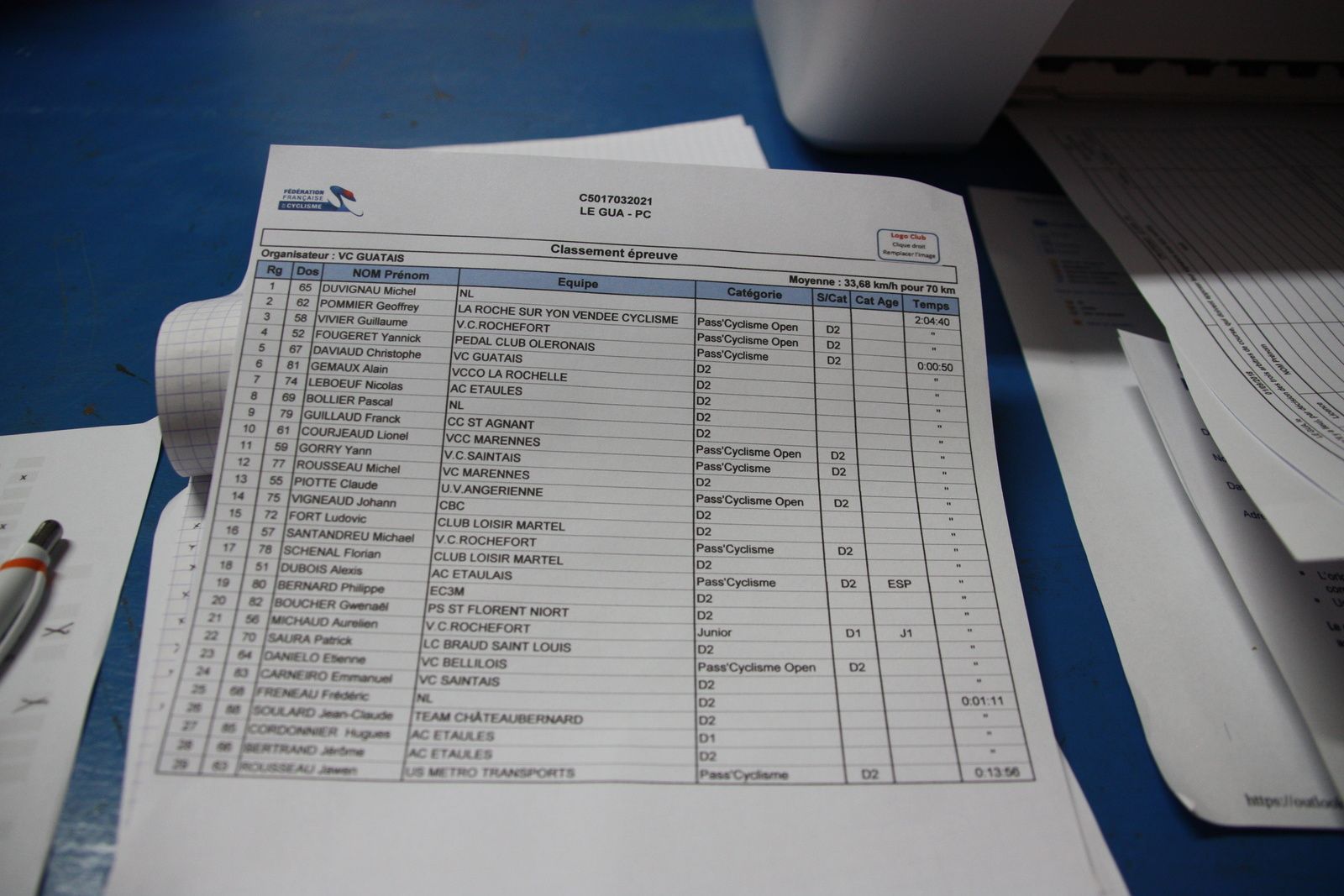 15e Mathieu TOFFOLETTI(AC Echiré), 16e Patrick BALLANGER(AC Jarnac-Aigre-Rouillac), 17e Lucas DESPRES (VC du Beaunois), 18e Lucas AUMENIER(Creuxe O), 19e Thomas AVRIL(UV Limoges), 20e Hervé ROBERT(UV Poitiers)